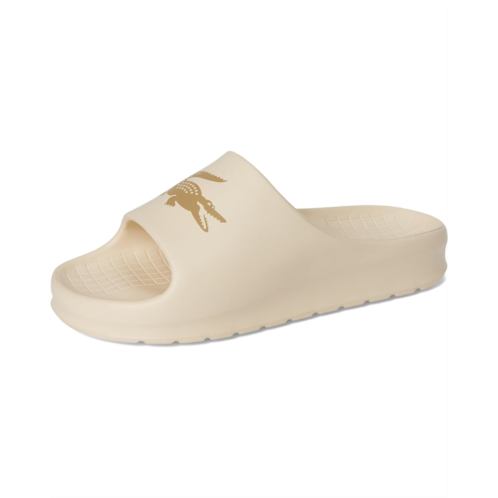 - Step into comfort and style with these Lacoste Serve Slide 2.0. Effortlessly blending sport-inspired design with signature Lacoste sophistication, they're a must-have for your warm-weather wardrobe. Crafted from EVA upper, lining, and insole, featuring open round toe, slip-on style that pairs perfectly with casual wear for a laid-back yet refined look, soft, and cushioned footbed that provides all-day comfort whether you're lounging by the pool or on the move.