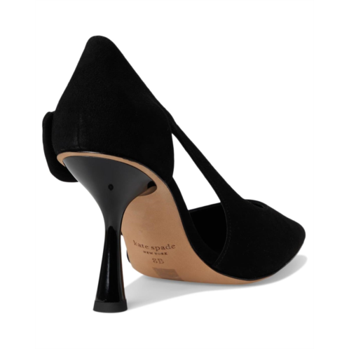 - The Kate Spade New York Bunnie Suede Pump features a sleek pointed toe and a stiletto heel for a confident stride. The standout detail? A whimsical oversized bow perched at the front, bringing chic flair to this slip-on silhouette.