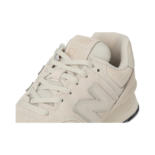 - Take your sporty style to a new level wearing the New Balance Classics 574 Sneakers, crafted in a sleek street style silhouette with lace-up closure for easy adjustability. The low-top sneakers come with a suede or mesh upper with signature New Balance logo detail on the side panel, textile lining, a removable padded footbed, and a cushioned midsole for ultimate comfort.