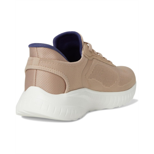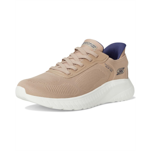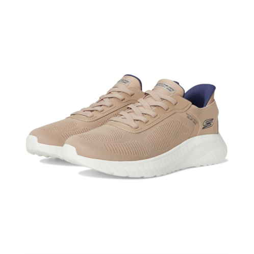 - Step into athletic style and comfort wearing the BOBS from SKECHERS Hands Free Slip-Ins Squad Chaos - Solid Step shoes. Designed with an exclusive Heel Pillow, these fashion sneakers feature an engineered knit upper with stretch laces and a cushioned Skechers Memory Foam insole. Experience cushioned comfort wherever you go wearing these lace-up sneakers.