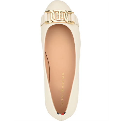 - Bring comfort to your feet by wearing the Tommy Hilfiger Gallyne flats. The slip-on style footwear have an almond-toe design with a Tommy Hilfiger enamel logo on the man-made upper to elevate the aesthetics. The low foot flat have a man-made lining and foam footbed ensure a comfortable wearing experience.