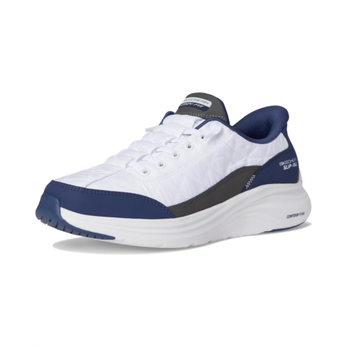 - Stay stylish and stay moving wearing the SKECHERS Contour Foam - Cozy Fit Hands Free Slip-Ins. Crafted from rubber upper, and insole, this pair of shoes features round toe, lace detailing, pull-on style, air-cooled memory foam, cozy fit, vapor foam, and brand detailing on the tongue, and footbed.