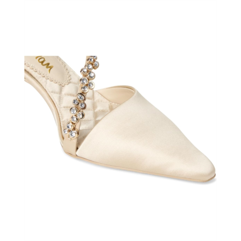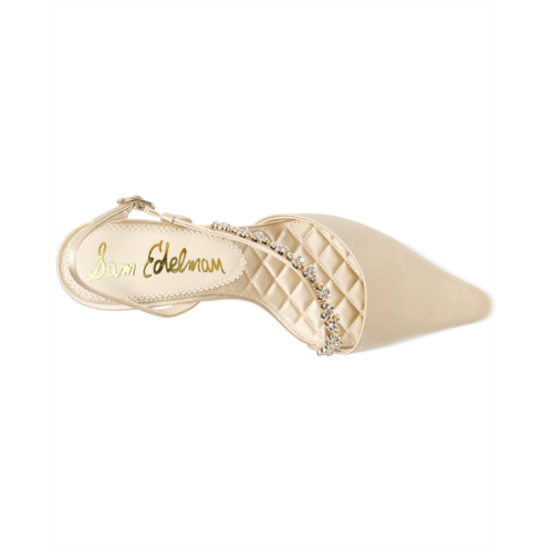 - Introducing the Sam Edelman Bonnie: a chic slingback kitten heel designed for effortless elegance. Featuring a sleek pointed toe and delicate pearl-embellished strap, this shoe brings a touch of sophistication to any outfit.