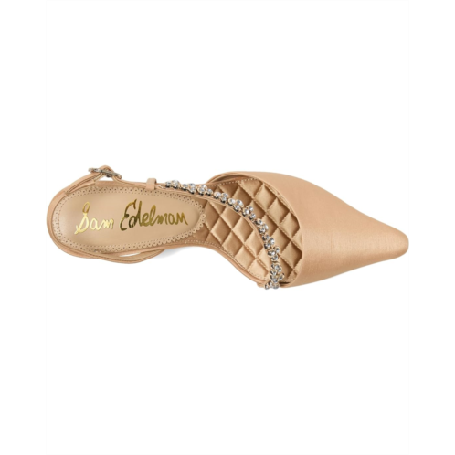 - Introducing the Sam Edelman Bonnie: a chic slingback kitten heel designed for effortless elegance. Featuring a sleek pointed toe and delicate pearl-embellished strap, this shoe brings a touch of sophistication to any outfit.