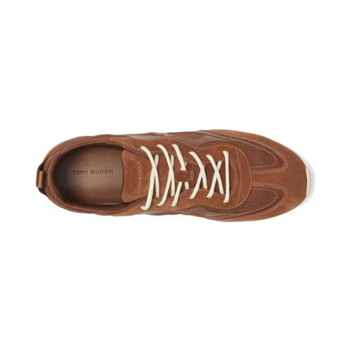 - The Tory Burch Field Sneakers are lace-up shoes that are a great choice for everyday wear. They are made of a suede upper, a rubber insole, and a polyester lining. From casual styles to laid-back looks, these low-top shoes work for different occasions.