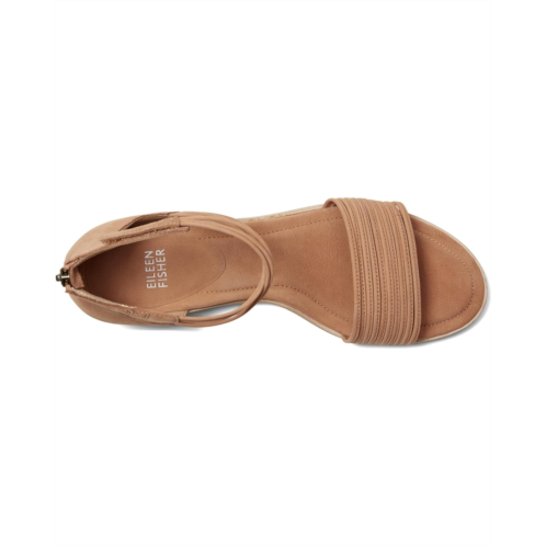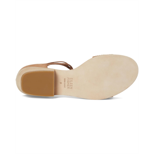- Feel the endless comfort wearing the Eileen Fisher Viro Sandal. Crafted from leather upper, lining, and insole, this pair of sandals features open round toe, low block heel, multiple bands at the front of the shoe and at the ankle, and back zippered closure for ease. It comes with brand detailing on the footbed.