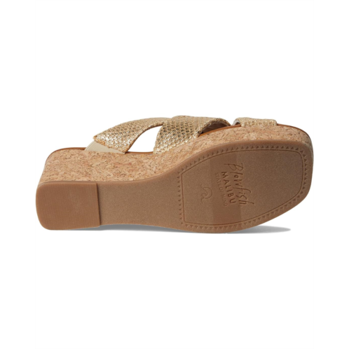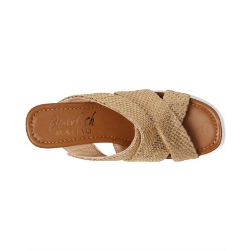 - Elevate your resort style choosing the Abi Wedge Sandal from Blowfish Malibu. It features a woven faux-leather upper with crisscross straps and a platform wedge heel for a little extra height. The sandals have polyurethane lining, foam insole, and synthetic rubber outsole.