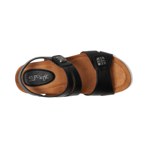 - Step into all day comfort wearing the EuroSoft Gallatin. Crafted from polyurethane upper, faux suede lining, and EVA insole, this pair of sandals features open round toe, hidden hook and loop adjustability on two straps, padded sock with cushion, natural cork footbed, and button detailing.