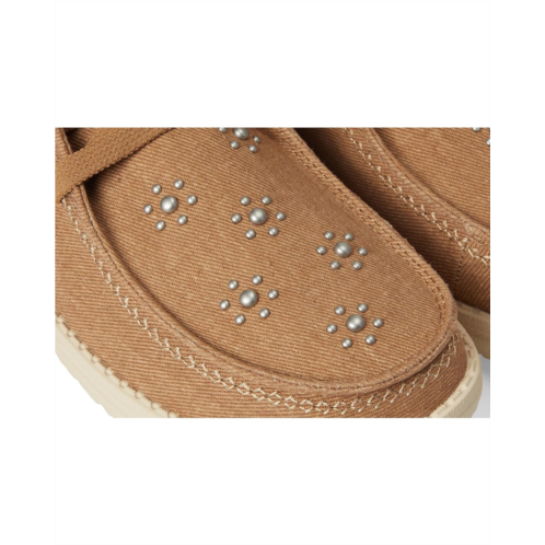 - Comfortable and easy to slip on, the Hey Dude Wendy Star Stud Loafer is your perfect companion for everyday walking. The slip-on style loafers are crafted with a textile upper with lace-up detail and beautiful star-studded details. The removable foam insole with extra cushioning provides comfort with every step.