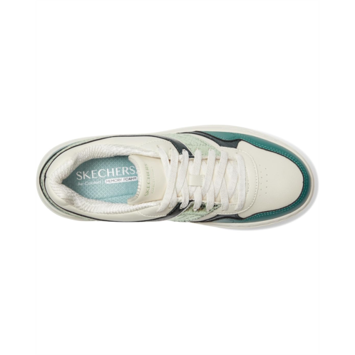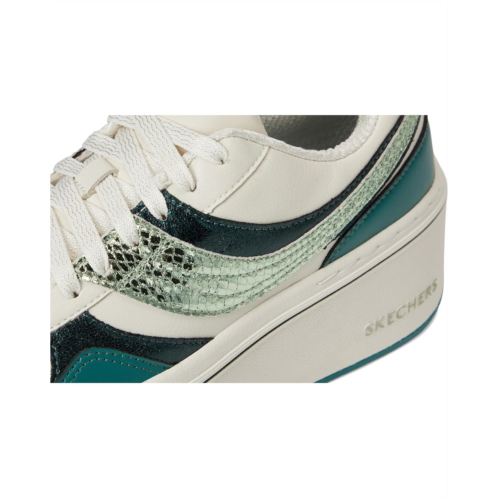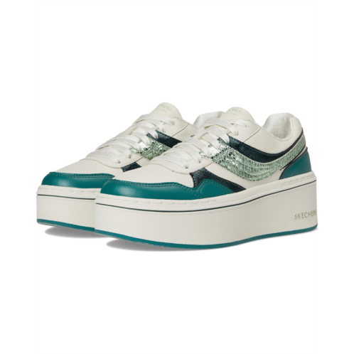 - Dazzle in every stride sporting the SKECHERS Paloma-Shimmer Takes All. Designed to dazzle, this platform court sneaker features a sleek lace-up duraleather PU upper with striking metallic reptile-textured overlays that elevate every look. The plush Air-Cooled Memory Foam insole cushions your every move with breathable support, while a flexible rubber traction outsole ensures confident steps on any surface. A bold platform midsole adds just the right amount of height, style, and attitude.