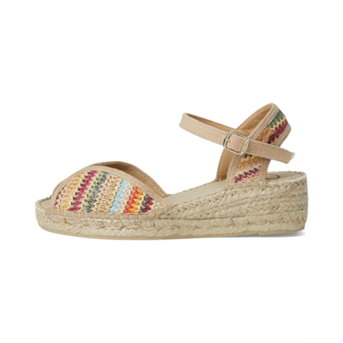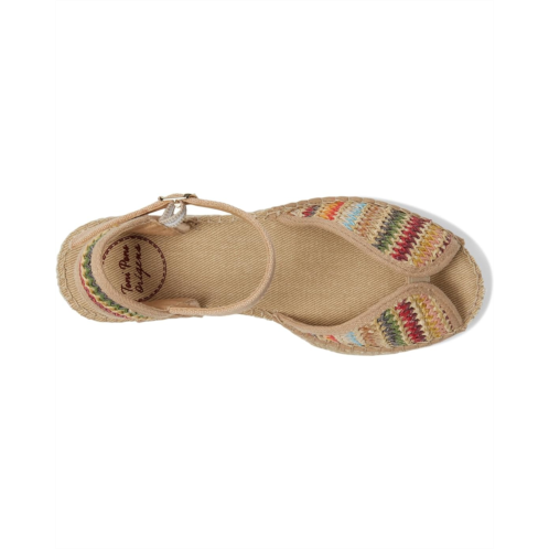 - Toni Pons Bella-Ma sandal is an epitome of style. Crafted from rubber upper, cotton lining, and insole, this pair of sandals features peep toe, outer wedge made of jute and rubber, fabric and sole union are hand-stitched with a high-quality cotton thread, an adjustable strap fastening and a multi-colored woven fabric upper.
