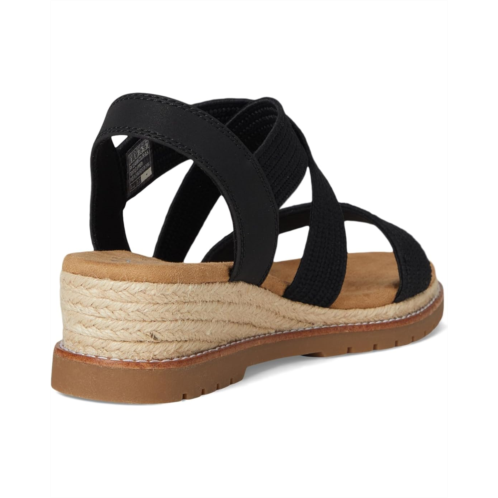 - Relaxed vibes, refined style: Indulge in laid-back luxury wearing BOBS from SKECHERS Desert Chill - Uptown Haze. Crafted with a chic polyester upper and an easy-to-wear low-profile wedge heel, this sandal is ideal for those relaxed days. The gore multi-strap design offers a secure fit, while the ankle back strap ensures added stability for all-day wear. Featuring a plush Skechers Memory Foam cushioned footbed, your feet will stay comfortable and supported. The durable rubber outsole adds traction, making it as functional as it is fashionable.