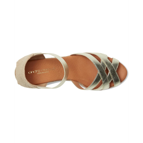 - The Andre Assous Adin sandal boasts a stretch raffia upper with elasticized strap for pull-on ease. Featuring a breathable leather lining, ensuring your feet stay cool and comfortable throughout the day. The memory foam footbed delivers superior cushioning, making these sandals ideal for all-day wear.
