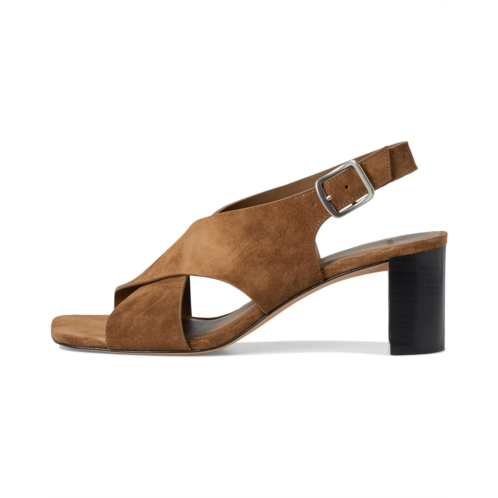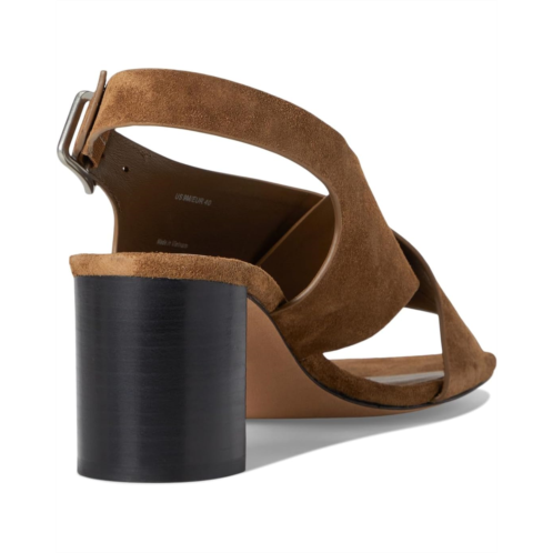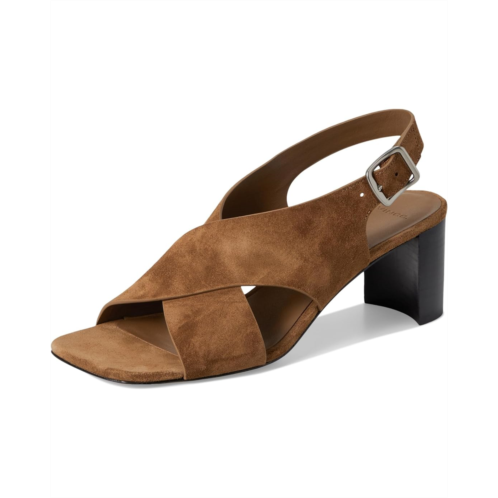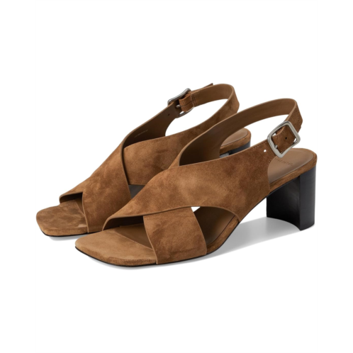 - The Vince Omega boasts overlapping smooth leather upper straps that gently hug the foot. Featuring sculptural stacked heel, the square toe sandal has cushioned foam insole and buckle adjustable slingback strap closure.