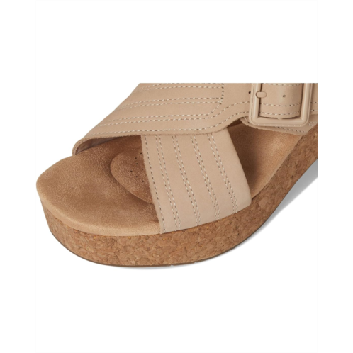 - Bold statement cork soles and premium materials in refreshed hues define Nerisa West - Clarks most wearable wedge yet. Featuring a buckle accent and hand stitching for a crafted aesthetic, this strappy silhouette champions Clarks 5mm Ultimate Comfort footbed and a dual-density cork wedge. The sandals feature premium nubuck or leather upper, smooth textile upper lining and sock feel soft against the foot.