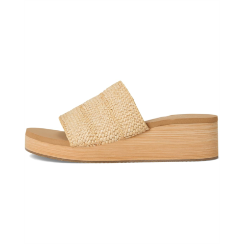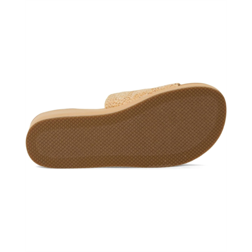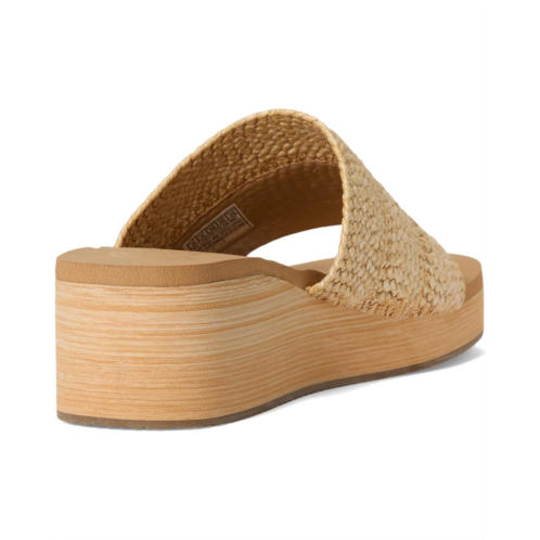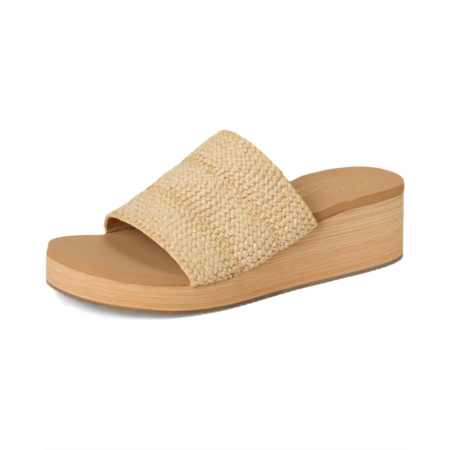 - Easy-wearing comfort in SKECHERS Summers - Salt Spray. This slide wedge heeled comfort sandal features a braided raffia slide upper on a platform wedge, synthetic rubber lining, contoured Luxe Foam cushioned comfort footbed, and faux wood grain platform midsole.