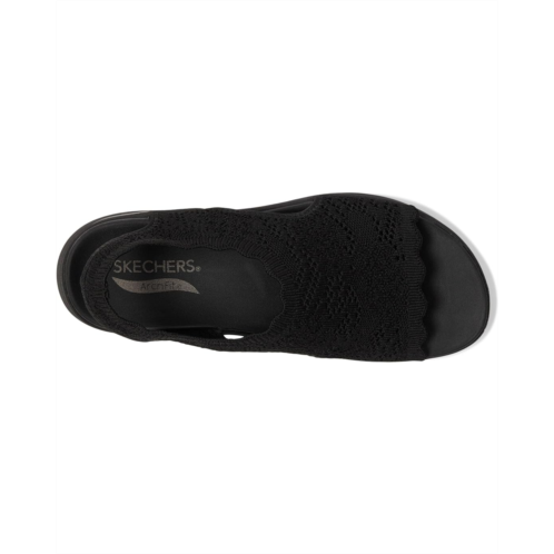 - Ease back with style and warm-weather comfort choosing the SKECHERS Arch Fit 2.0 - Flawless Choice. This vegan comfort sandal features a breathable Stretch Fit crochet knit upper H-band upper with scalloped trim and Patented Skechers Arch Fit contoured footbed with podiatrist-certified arch support. The machine washable style has a Stretch Fit design for sock-like comfort and flexible traction outsole.
