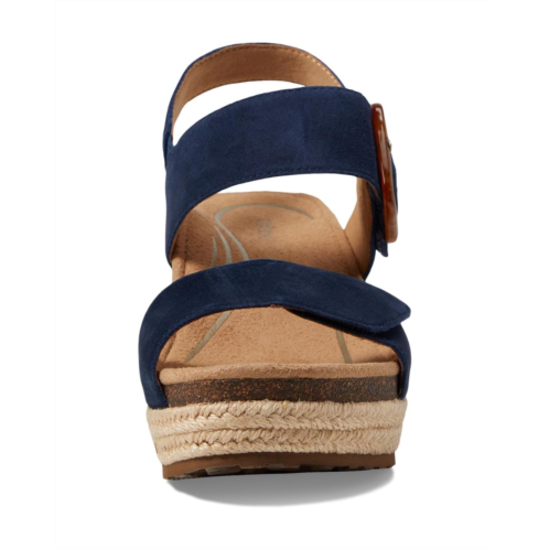 - Crafted from suede upper, the Aetrex Ashley features wedge heel, open round toe, and arch support that helps to stabilize your body, align your feet and relieve common foot pain. These sandals are super stylish and comfortable. It comes with wide straps, buckled closure, and brand detailing on the footbed.