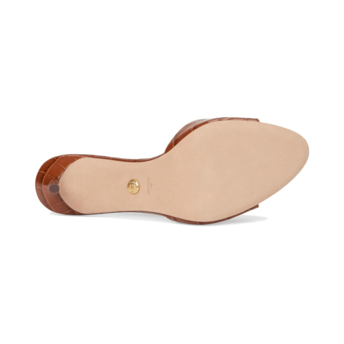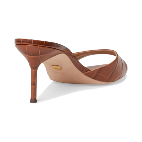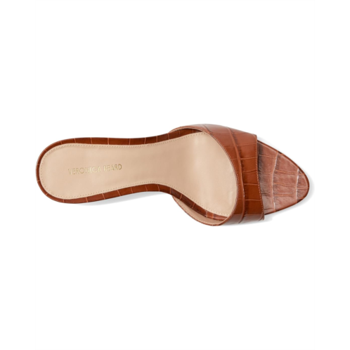 - A stylish stiletto heel rests atop the Veronica Beard Tia sandal. This slip-on footwear is designed with an open almond toe shape.