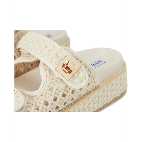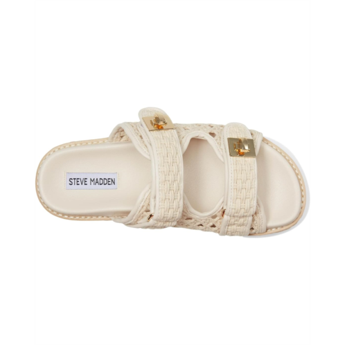 - Elevate your style donning the Steve Madden Bigschmona platform slide sandal. The flatform design provides a modern twist while the turn-lock hardware accent adds a touch of sophistication. Step up your fashion game while enjoying the comfort and stability of this versatile shoe. The stylish flats have suede upper, synthetic rubber lining, and rubber insole.