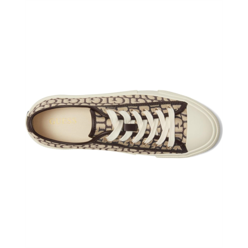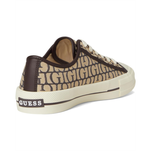 - Repeating G logo brands this casual sneaker. The Guess Carey jacquard low-top sneaker is set on a rubber sole and laces up for a timeless effortless look. Est. 1981, Guess is a global lifestyle brand and a symbol of a young, adventurous lifestyle.