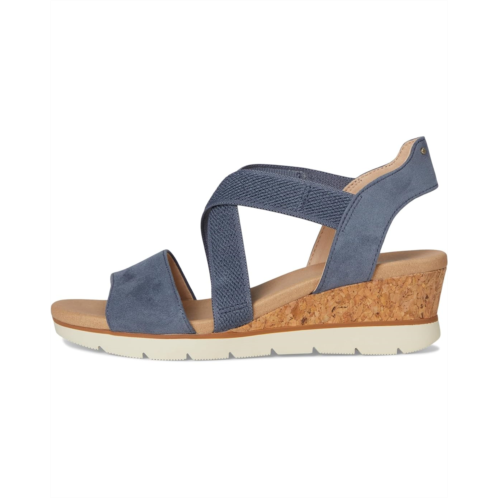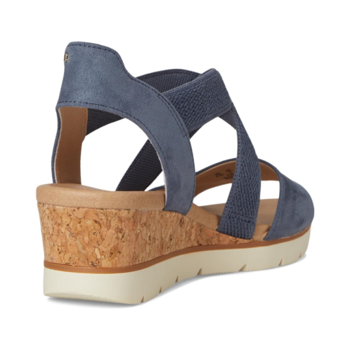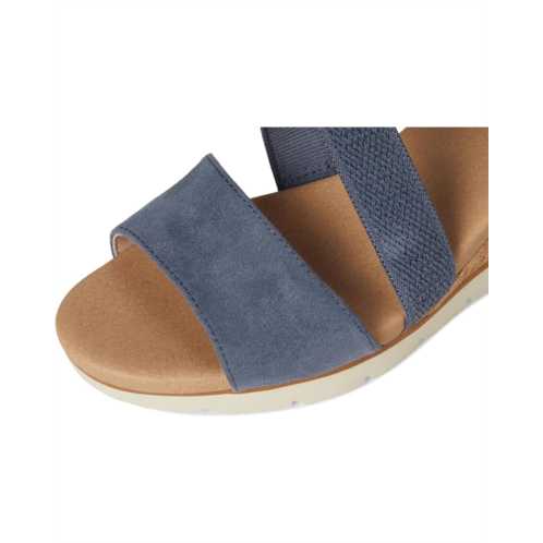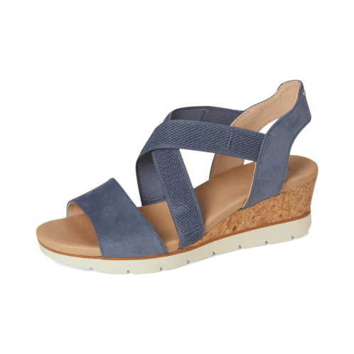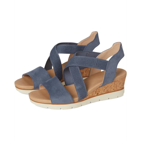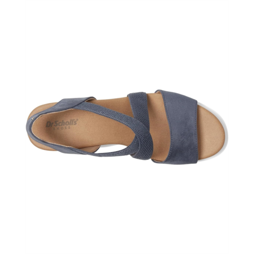- The Dr. Scholl's Just Cute, womens strappy wedges with a sporty hybrid design and casual comfort. Crafted from canvas upper, fabric lining, and EVA insole, this pair of sandals features open round toe, slips on with stretch gore instep strap for easy on/off, flexibility, and secure fit. Insole Technology with cushioning, comfort, and arch support.