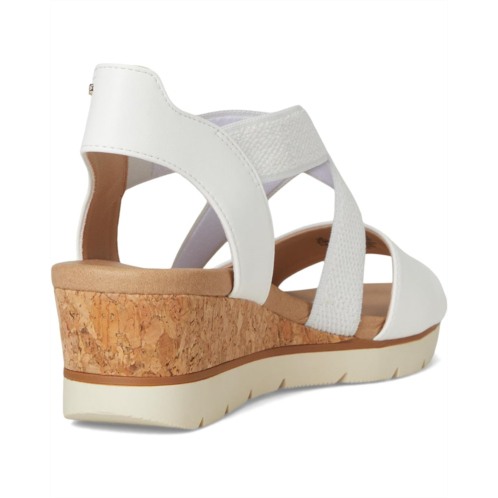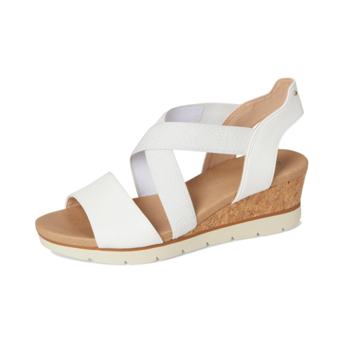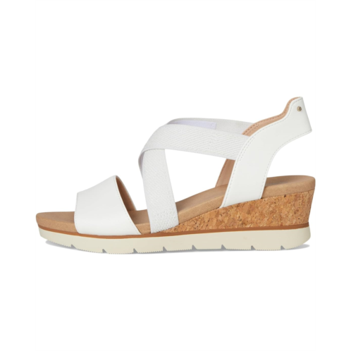- The Dr. Scholl's Just Cute, womens strappy wedges with a sporty hybrid design and casual comfort. Crafted from canvas upper, fabric lining, and EVA insole, this pair of sandals features open round toe, slips on with stretch gore instep strap for easy on/off, flexibility, and secure fit. Insole Technology with cushioning, comfort, and arch support.