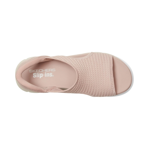 - Enjoy sunny days in breezy comfort with Skechers Hands Free Slip-ins: Summits - Sweetly Evolved. Designed with the Heel Pillow, this slingback sandal features a stretch fabric strap upper with a cushioned Yoga Foam footbed.