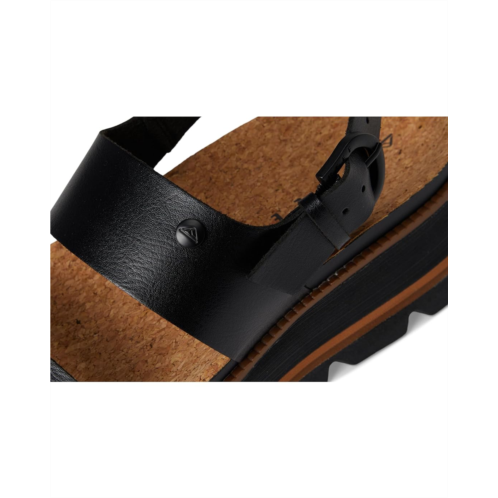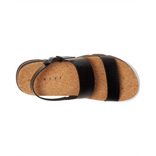 - Take every step forward with improved comfort and functionality wearing Reef Vista Luxe Liah Sandals. The open-round toe sandals are crafted with soft vegan leather upper straps, leather lining, a cushy & contoured 'VISTA' polyurethane footbed with natural cork, and cushioned EVA midsole. The adjustable buckle at heel offers a snug, secure fit, while the sidewall design features stylish color blocking.