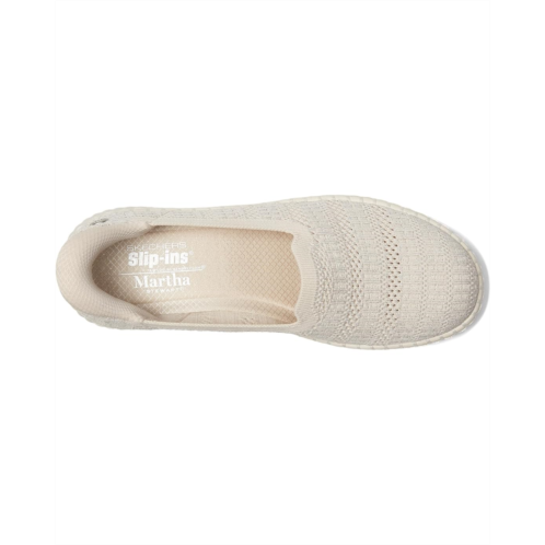 - Celebrated lifestyle expert, Martha Stewart, delivers her one-of-a-kind touch to Skechers in this spirited collaboration. Heighten your steps in style wearing SKECHERS Martha Stewart Wilshire Blvd - Glimmer Step Hands Free Slip-Ins. Designed with our Exclusive Heel Pillow that holds your foot securely in place, this casual sneaker features a Skechers Hands Free Slip-ins for an easy fit, molded heel panel, Stretch Fit engineered knit upper, and a Skechers Air-Cooled Memory Foam comfort insole.