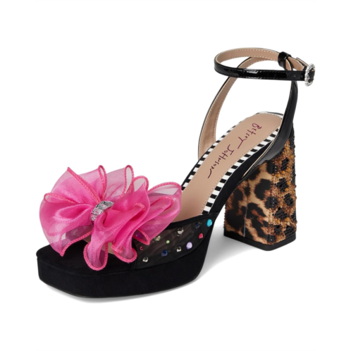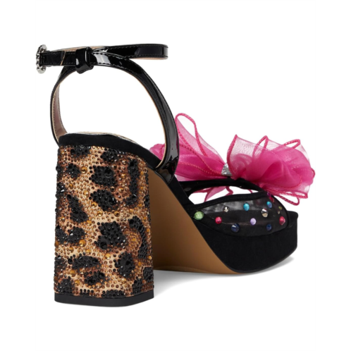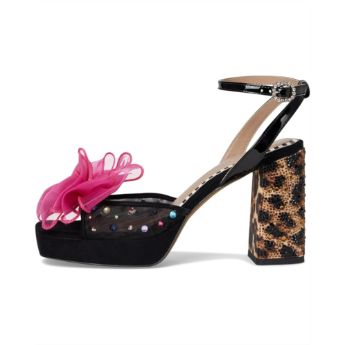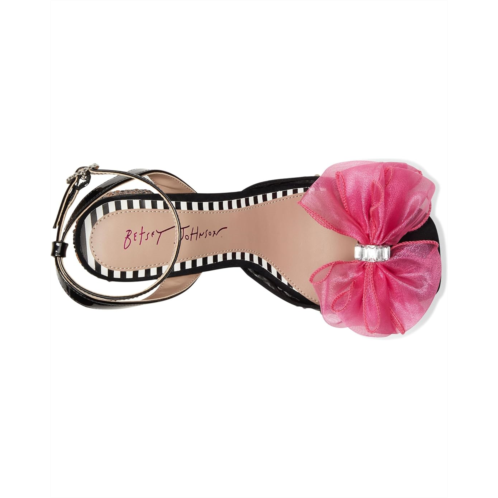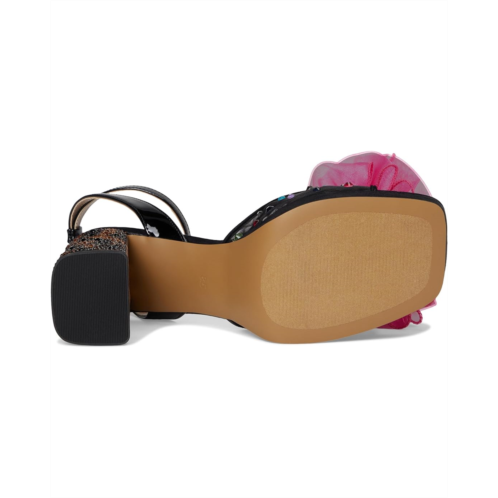 - The Blue by Betsey Johnson Palloma sandal features a large flower and crystal embellishments that bring an eye-catching flair. The squared open toe design, ankle strap with buckle closure, and sculpted block heel offer both elegance and support.