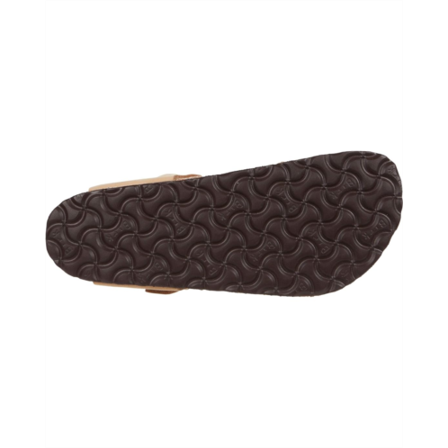 - Anatomically shaped suede-lined cork and latex footbed molds to the shape of the foot.
