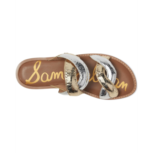 - The timeless design and easy slip-on fit of the Sam Edelman Hellen Sandals make them a must-have for those seeking both style and comfort. The open toe sandals are crafted with a leather upper with two beautifully braided straps, polyurethane lining, and a faux leather insole.