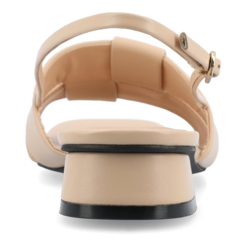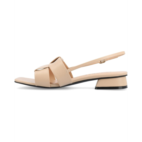 - The Journee Collection Tabatha sandals are a stylish and comfortable choice, featuring block heels that provide a subtle lift without compromising comfort. Their ankle strap with a buckle closure ensures a secure fit, and the open, square toe design adds a modern touch. Crafted with faux leather for both the upper material and lining and equipped with a 4 mm Tru Comfort Foam footbed and faux leather insole, these heeled sandals seamlessly combine fashion and wearability for versatile and enjoyable footwear.