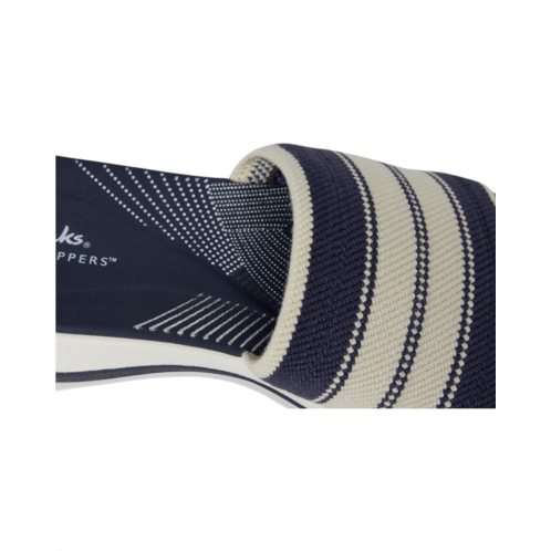- Part of Clarks Cloudsteppers collection, Clarks Arla Hollis is all about lightness and feeling free - perfect for everything from relaxing in the garden to coastal escapes. Keeping comfort at its core, this breezy silhouette keeps steps feeling effortless thanks to a Cushion Soft footbed, while the curved design and stripy upper complement your foot perfectly. Soft textile upper, cushion Soft foam footbed offers lasting comfort. Slip-on for easy on/off, and lightweight ethylene vinyl acetate midsole supports and cushions your foot.