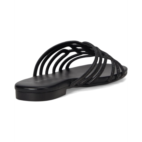- Complete your look in the Nine West Timy dress flats. They feature a modern square toe shape, strappy silhouette, and embellishments on the straps. These slide sandals are made of a polyurethane upper, cushioned footbed, and polyurethane lining. These flat sandals are anything but boring and sure to impress.
