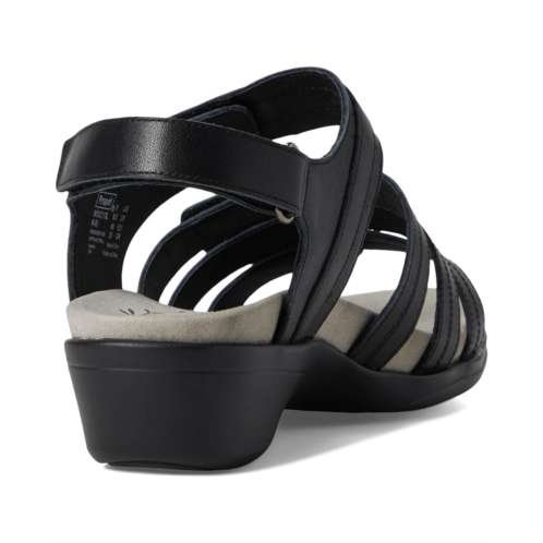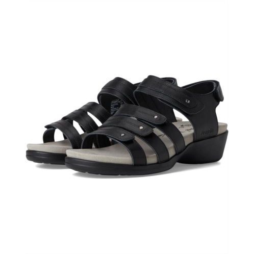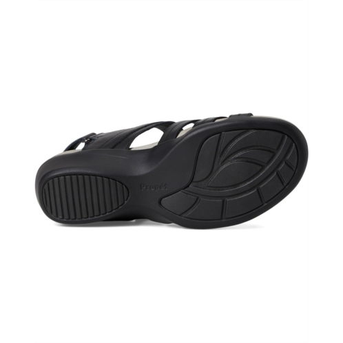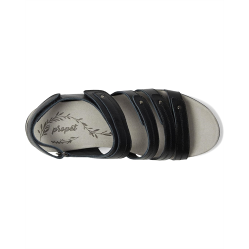 - Give your outfits an added touch of style wearing Propet Ainsley Sandals with a strappy full-grain leather upper and comfort leather lining. The four adjustable hook-and-loop top straps and D-ring back strap ensure the perfect fit, while the extra-cushioned, contoured arch-supporting polyurethane foam footbed with microfiber sock lining offers unmatchable comfort. The polyurethane outsole absorbs shock with rubber inserts for added traction and the wedge heel elevates the style game.