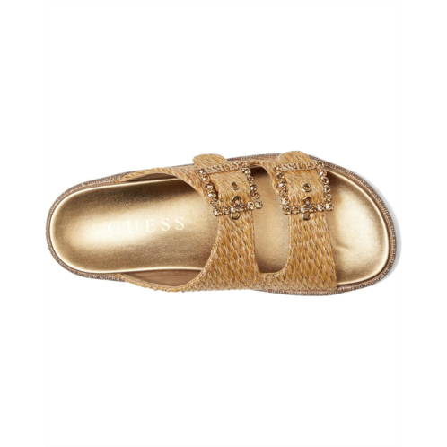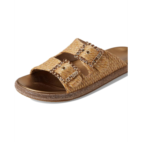- Drawing inspiration from a classic footbed silhouette, the GUESS Funzy slip-on sandal offers a stylish eye-catching flair. Beautiful rhinestone accents and fun materials bring some glitz to this laidback summery style.