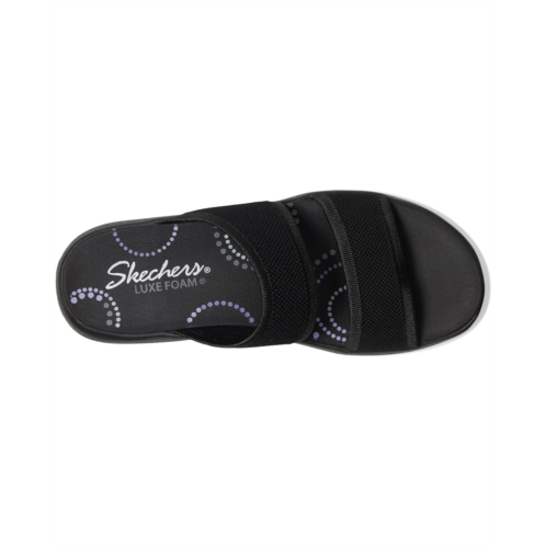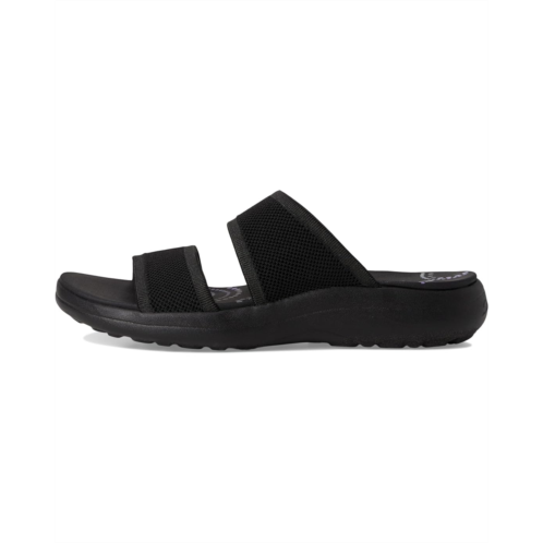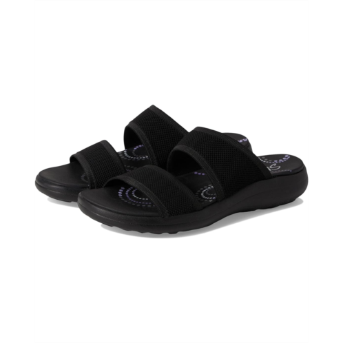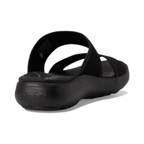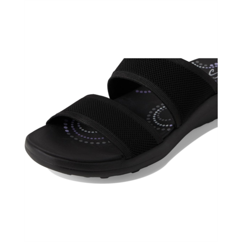 - Long-lasting comfort combines with effortless style in the SKECHERS Sporty Slim sandals. Machine washable and water-resistant, these sandals feature a synthetic and soft Stretch Fit fabric upper with an adjustable strap and leather lining. The patented Skechers Arch Fit contoured footbed with podiatrist-certified arch support molds to your foot to reduce shock and increase weight dispersion. Crafted with 100% vegan materials, these slip-on sandals are perfect for your everyday wear.