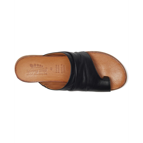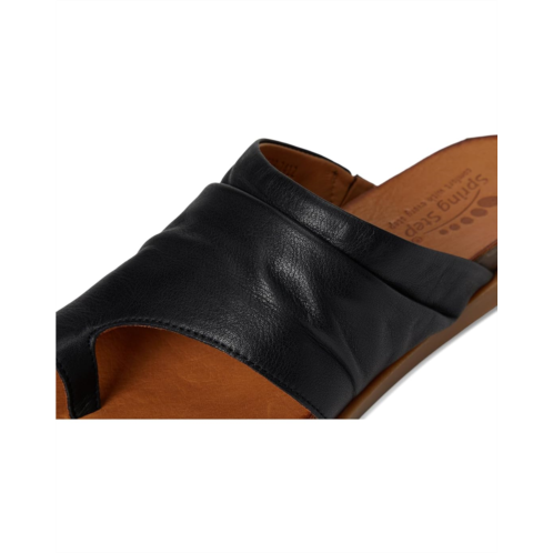- Elevate your comfort wearing the artistic design Spring Step Bates. Crafted from leather upper, lining, and insole, this pair of sandals features gathered leather upper that adds a distinctive touch of luxury, delicate toe ring detail offers a stylish and secure fit, slip-on style, and brand detailing on the footbed, and low heel.
