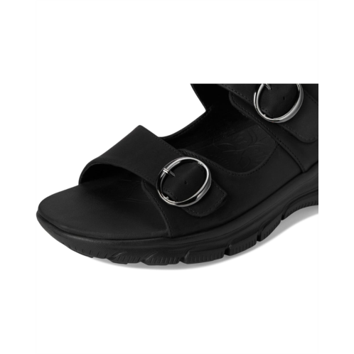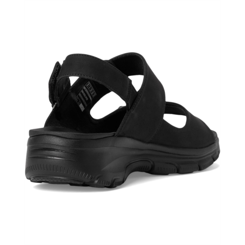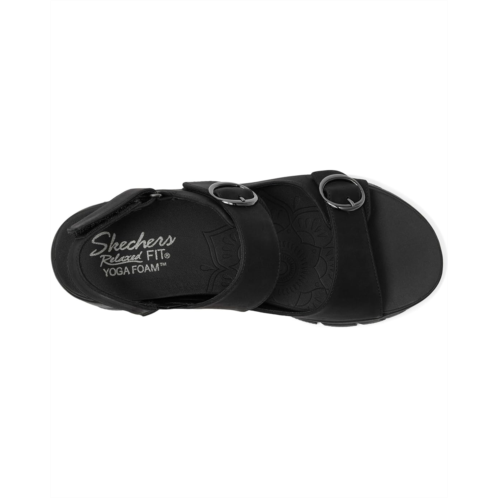 - Enjoy sunny-weather comfort with signature comfort in SKECHERS Relaxed Fit: Easy Going - Certified Charm. This casual strappy sandal features a vegan leather upper with adjustable hook-and-loop strap closures and a cushioned Yoga Foam footbed.