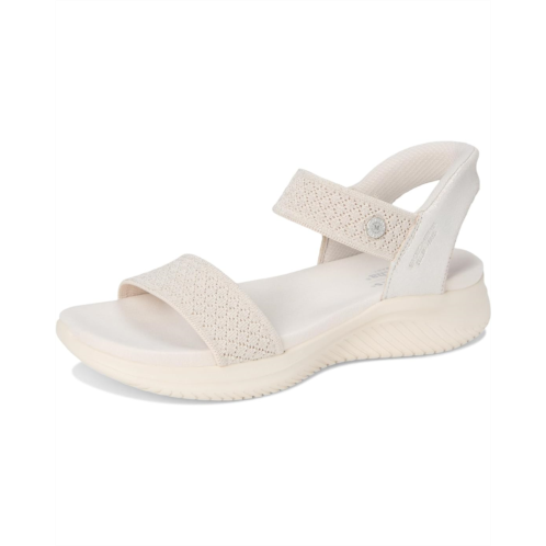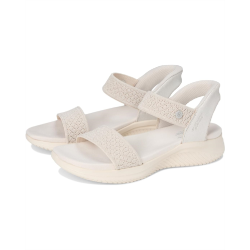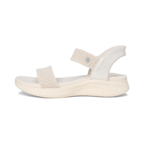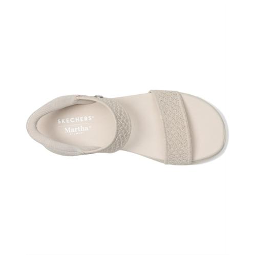 - Enjoy sunny-weather comfort choosing the SKECHERS Martha Stewart's Ultra Flex 3.0 - Shine On Us. This casual strappy sandal features vegan shimmer knit upper with leather trim, adjustable hook-and-loop strap closures, and a cushioned Yoga Foam footbed.