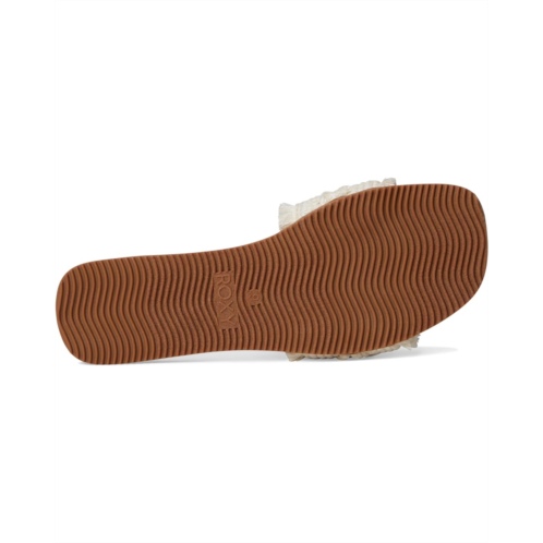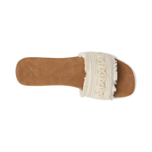- Walk empowered wearing the Roxy Positano. Crafted from textile upper, fabric lining, features open round toe, slip-on style, flat style, and brand detailing on the footbed.