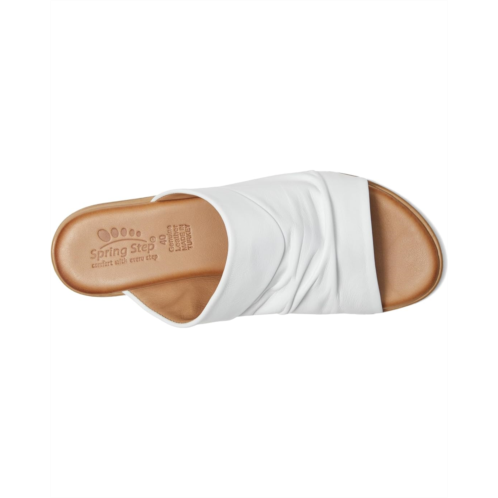 - Keep your feet cool and comfortable while adding a touch of sophistication to your look wearing the Spring Step Jaleel. Crafted from leather upper, lining, and insole, this pair of sandals features open round toe, cushioned leather footbed that provides support and all-day comfort, ruched upper detailing on the strap, easy slip-on style, and brand detailing on the footbed.
