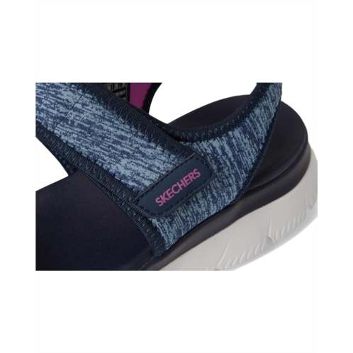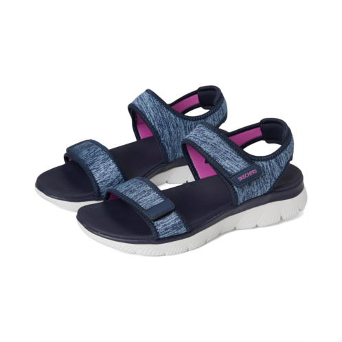 - The SKECHERS Summits - Cutest Icon are ready for anything, from errands to explorations. This trendy sandal combines laid-back beach vibes with modern flair, featuring a leather upper and lining for a sleek, elevated look. Designed with a Yoga Foam cushioned footbed, it offers cloud-like comfort with every step. The flexible traction rubber outsole ensures stable footing, while the hook-and-loop closure and adjustable double strap slingback provide a custom, secure fit. Open-toe design lets your feet breathe, making it perfect for sunny days. Crafted with vegan materials, it's the eco-friendly choice for fashion-forward comfort.