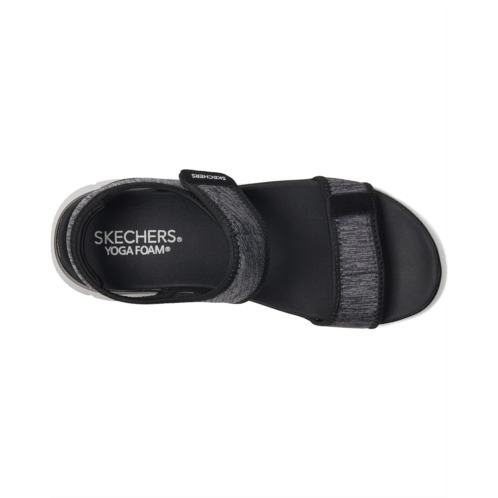 - The SKECHERS Summits - Cutest Icon are ready for anything, from errands to explorations. This trendy sandal combines laid-back beach vibes with modern flair, featuring a leather upper and lining for a sleek, elevated look. Designed with a Yoga Foam cushioned footbed, it offers cloud-like comfort with every step. The flexible traction rubber outsole ensures stable footing, while the hook-and-loop closure and adjustable double strap slingback provide a custom, secure fit. Open-toe design lets your feet breathe, making it perfect for sunny days. Crafted with vegan materials, it's the eco-friendly choice for fashion-forward comfort.