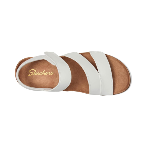 - Bring comfort to your feet with every step you take wearing the SKECHERS Lifted Comfort. The slip-on style sandals have an open-round toe design, strappy silhouette, adjustable quarter straps, and comfortable breathable fit. The sandals have dura leather upper, mesh lining, and Skechers memory foam footbed for a comfortable wear. The sandals are crafted with vegan materails.