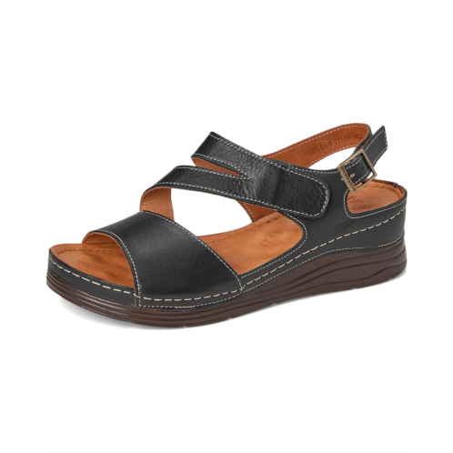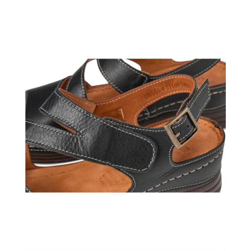 - The new chic and comfy Spring Step Griggs are perfect for all day outing. Crafted from leather upper, lining, and insole, this pair of sandals features open round toe, multi-closure options such as an adjustable buckle back strap and hook-and-loop closure to provide a customize fit, strappy design, soft and massage leather footbed provides maximum comfort with every step, and lightweight, dark sole provides cushion and support.