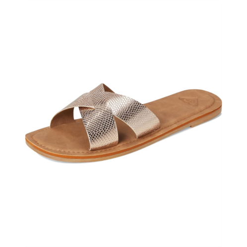 - The Roxy Andreya sandals are a stylish and comfortable choice for any occasion. Made with a synthetic PU upper featuring crisscross straps, these flat sandals offer a trendy look that will elevate any outfit. The rubber footbed ensures optimal comfort, while the round toe design with a heel contour provides added support for all-day wear.