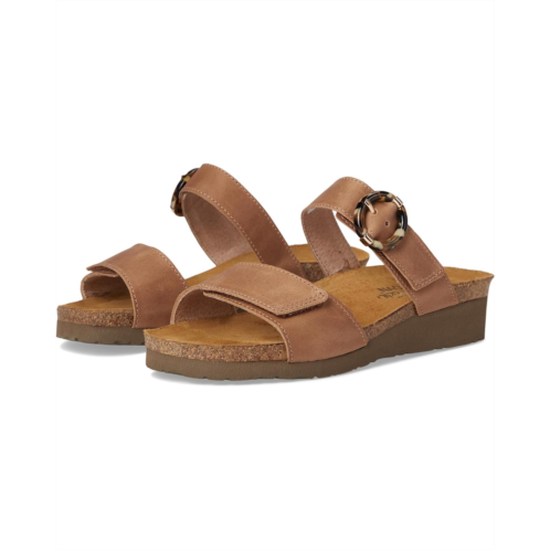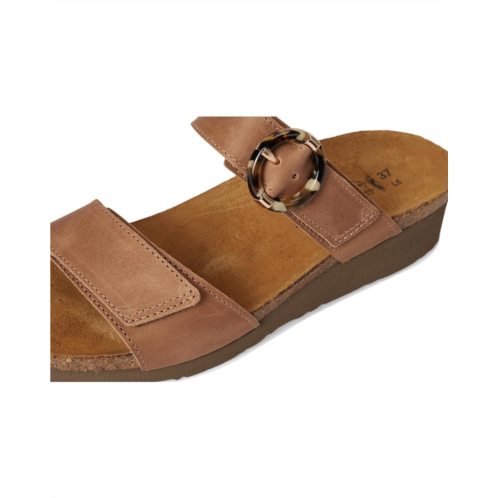 - Give comfort a priority wearig the casual and classic Naot Anabel Sandals that features an open round toe shape and buckle accent on its strappy design. The slip-on style sandals are crafted with a leather upper, leather lining, and Naot's anatomic cork & latex footbed that is wrapped in a pampering suede and molds to the shape of the foot with wear.